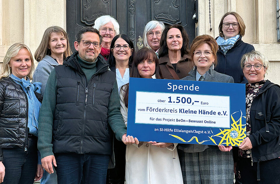 Um Kindern und Jugendlichen Orientierung im Umgang mit sozialen Medien zu ermöglichen, unterstützt der Förderkreis kleine Hände e.V. das Präventionsprojekt „BeOn – Bewusst Online” des SI-Club Ellwangen/Jagst. Der Vorstand übergab die Spende an die derzeitige Clubpräsidentin, Dr. Kathrin Plänker und an die Vorsitzende des Fördervereins SI-Hilfe Ellwangen/Jagst, Christina Faber.