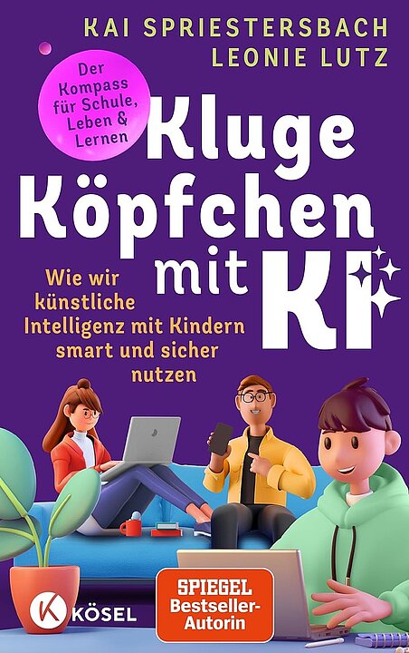 Der Elternratgeber „Kluge Köpfchen mit KI“ von Leonie Lutz und Kai Spriestersbach liegt aus und kann am Büchertisch erworben werden.